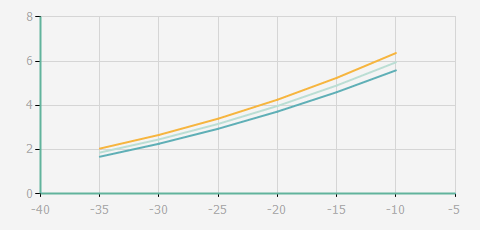 | 蒸發(fā)溫度 | 制冷量+/-5% | 能耗+/-5% | 現(xiàn)在能效+/-5% | 氣體流速+/-5% | 能效+/-7% | ||||