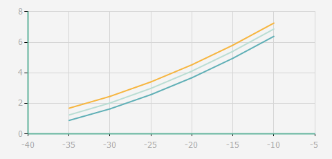 | 蒸發(fā)溫度 | 制冷量+/-5% | 能耗+/-5% | 現(xiàn)在能效+/-5% | 氣體流速+/-5% | 能效+/-7% | ||||