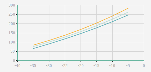 | 蒸發(fā)溫度 | 制冷量+/-5% | 能耗+/-5% | 現(xiàn)在能效+/-5% | 氣體流速+/-5% | 能效+/-7% | ||||