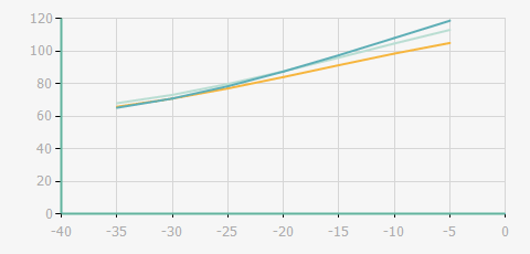 | 蒸發溫度 | 制冷量+/-5% | 能耗+/-5% | 現在能效+/-5% | 能效+/-7% | ||||