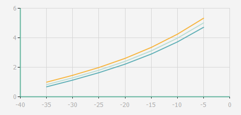 | 蒸發溫度 | 制冷量+/-5% | 能耗+/-5% | 現在能效+/-5% | 氣體流速+/-5% | 能效+/-7% | ||||