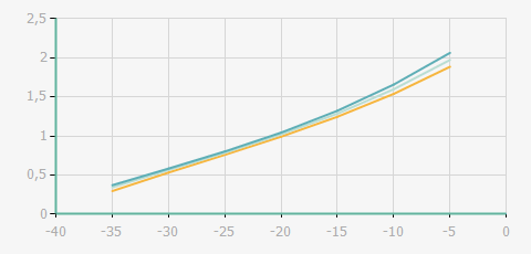 | 蒸發溫度 | 制冷量+/-5% | 能耗+/-5% | 現在能效+/-5% | 氣體流速+/-5% | 能效+/-7% | ||||