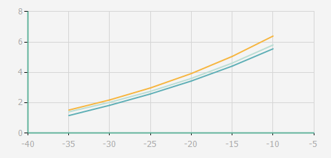 | 蒸發(fā)溫度 | 制冷量+/-5% | 能耗+/-5% | 現(xiàn)在能效+/-5% | 氣體流速+/-5% | 能效+/-7% | ||||