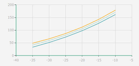 | 蒸發(fā)溫度 | 制冷量+/-5% | 能耗+/-5% | 現(xiàn)在能效+/-5% | 氣體流速+/-5% | 能效+/-7% | ||||