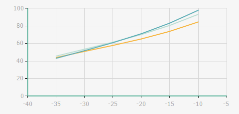 | 蒸發(fā)溫度 | 制冷量+/-5% | 能耗+/-5% | 現(xiàn)在能效+/-5% | 氣體流速+/-5% | 能效+/-7% | ||||