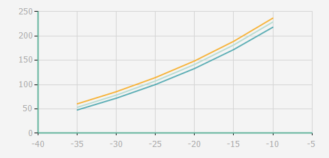 | 蒸發溫度 | 制冷量+/-5% | 能耗+/-5% | 現在能效+/-5% | 氣體流速+/-5% | 能效+/-7% | ||||