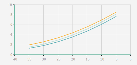 | 蒸發溫度 | 制冷量+/-5% | 能耗+/-5% | 現在能效+/-5% | 氣體流速+/-5% | 能效+/-7% | ||||